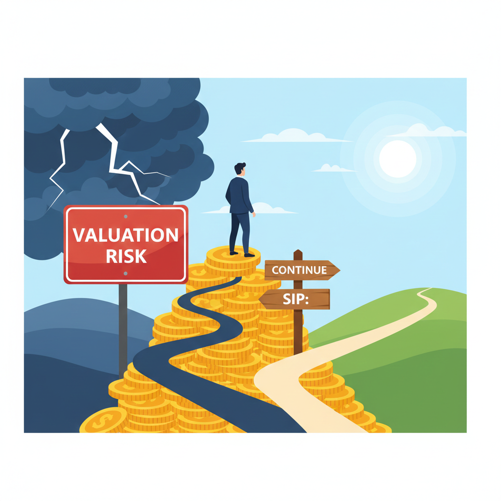 This isn’t just about fear or greed. It’s about navigating one of the most complex investment dilemmas today. In this comprehensive guide, we’ll dissect the three critical dimensions every investor must understand: Valuation Risk, the SIP Pause vs Continue debate, and the crucial Allocation Limits (20-30% Rule).