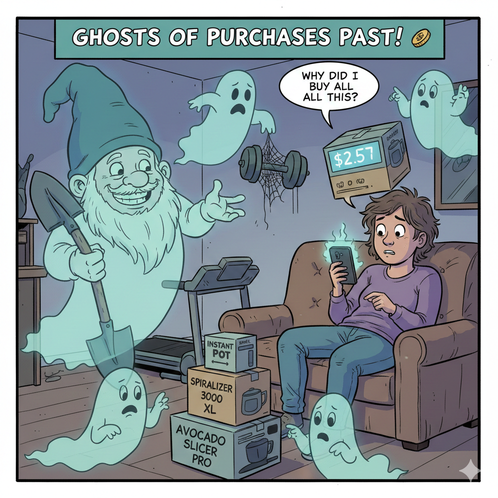 That “treat yourself” moment when you bought the limited-edition, glow-in-the-dark garden gnome? Present You felt powerful. Future You, trying to scrape together a house deposit, will have words. This creates a unique time-travel paradox of self-loathing.