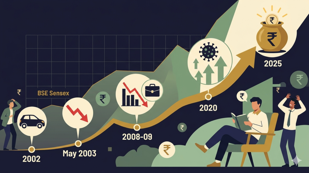 The Indian stock market has an extraordinary long-term track record. The Sensex has grown from under 1,000 in the early 1990s to over 70,000 today. Every major crash has been followed by an even bigger recovery. History has consistently rewarded patient, disciplined investors.